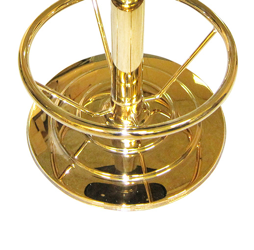 A circular footrest ring is integrated into the base design. This practical feature allows guests to rest their feet comfortably, which is essential for bar-height seating. The footrest also adds structural strength to the overall chair design.